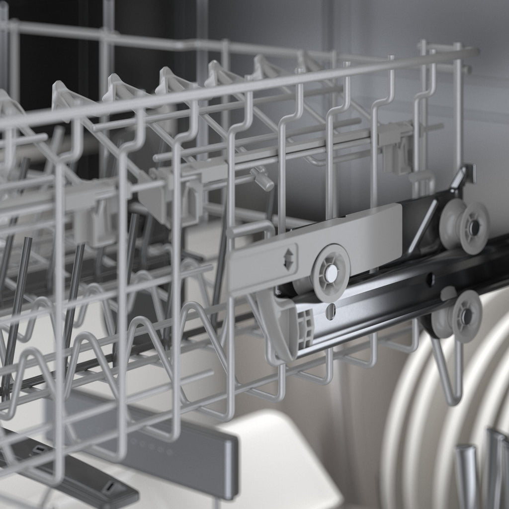 The RackMatic middle rack easily adjusts to three different heights and up to 9 separate rack positions, allowing taller items like stemware to fit in the middle rack while leaving room for pots and pans below.