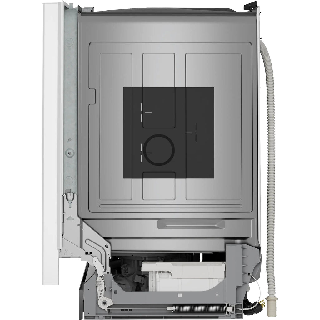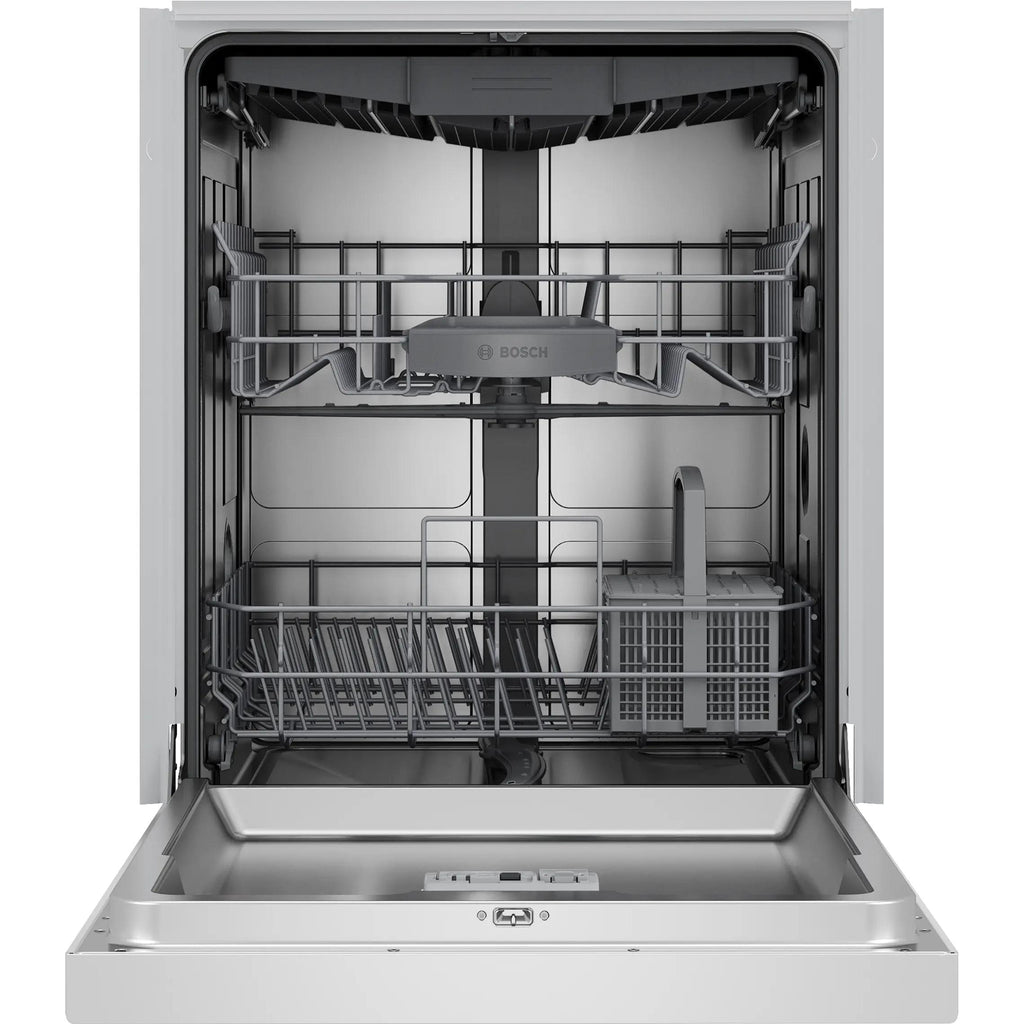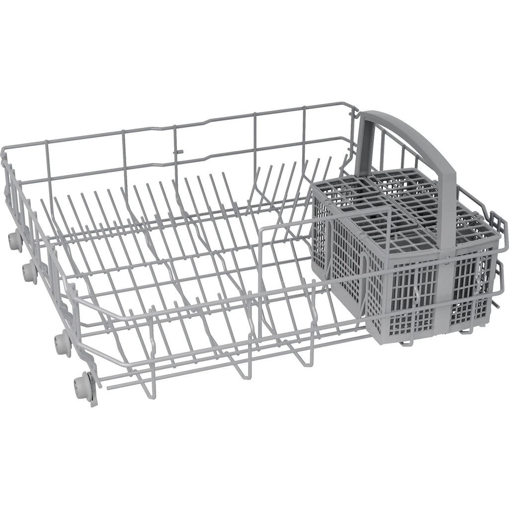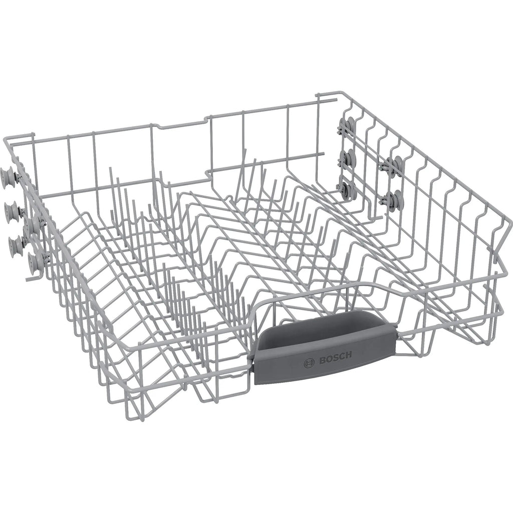 The 3rd rack provides extra space for flatware, large utensils and measuring cups. Its V shape leaves room below for tall items. *Compared to a Bosch dishwasher with 2 racks