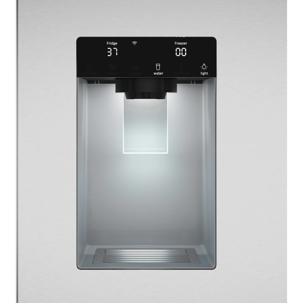 Fill your favorite glass or bottle hands-free using BottleFill technology. Fill your favorite container once, press bottle fill to save the quantity, and enjoy a hands-free fill each time thereafter.
