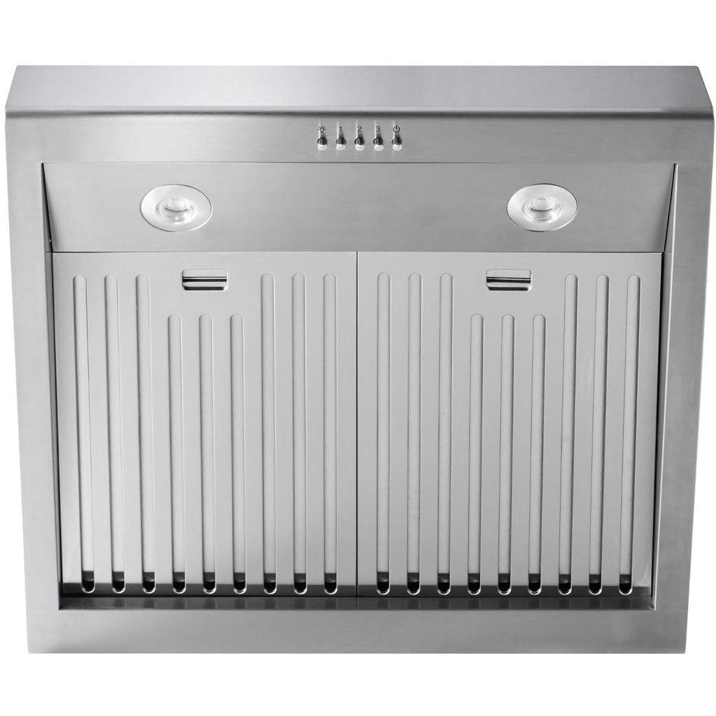 Large, commercial-style 430 grade stainless steel baffle filter maximizes air flow and grease filtering while the hood is in operation.