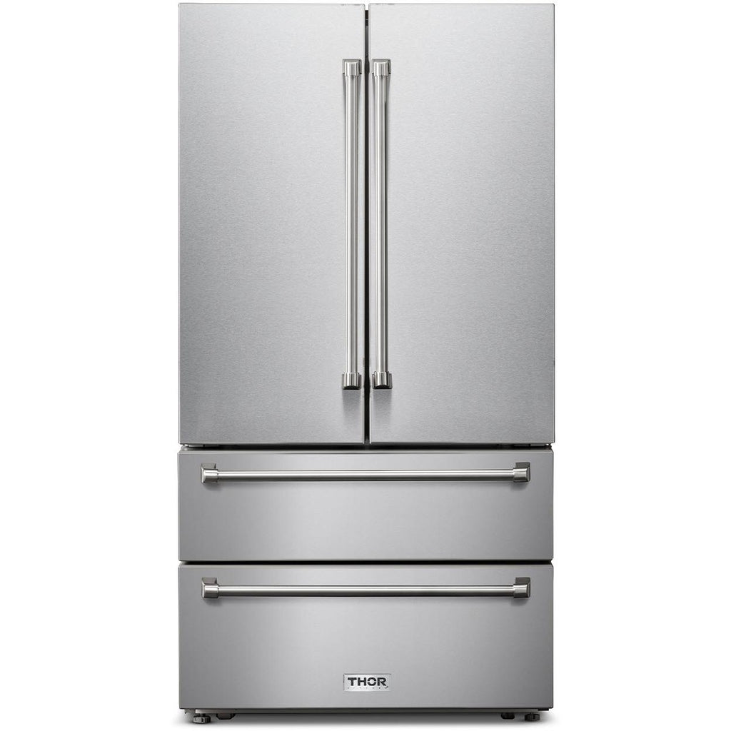 THOR Kitchen offers the power and performance of a premium professional appliance at a practical price. THOR Kitchen's 36 Inch... THOR Kitchen offers the power and performance of a premium professional appliance at a practical price. THOR Kitchen's 36 Inch Professional French Door Refrigerator with two separate Freezer Drawers provides ample storage and keeps everything as cool, crisp, cold and/or frozen as the recipe calls for. View more