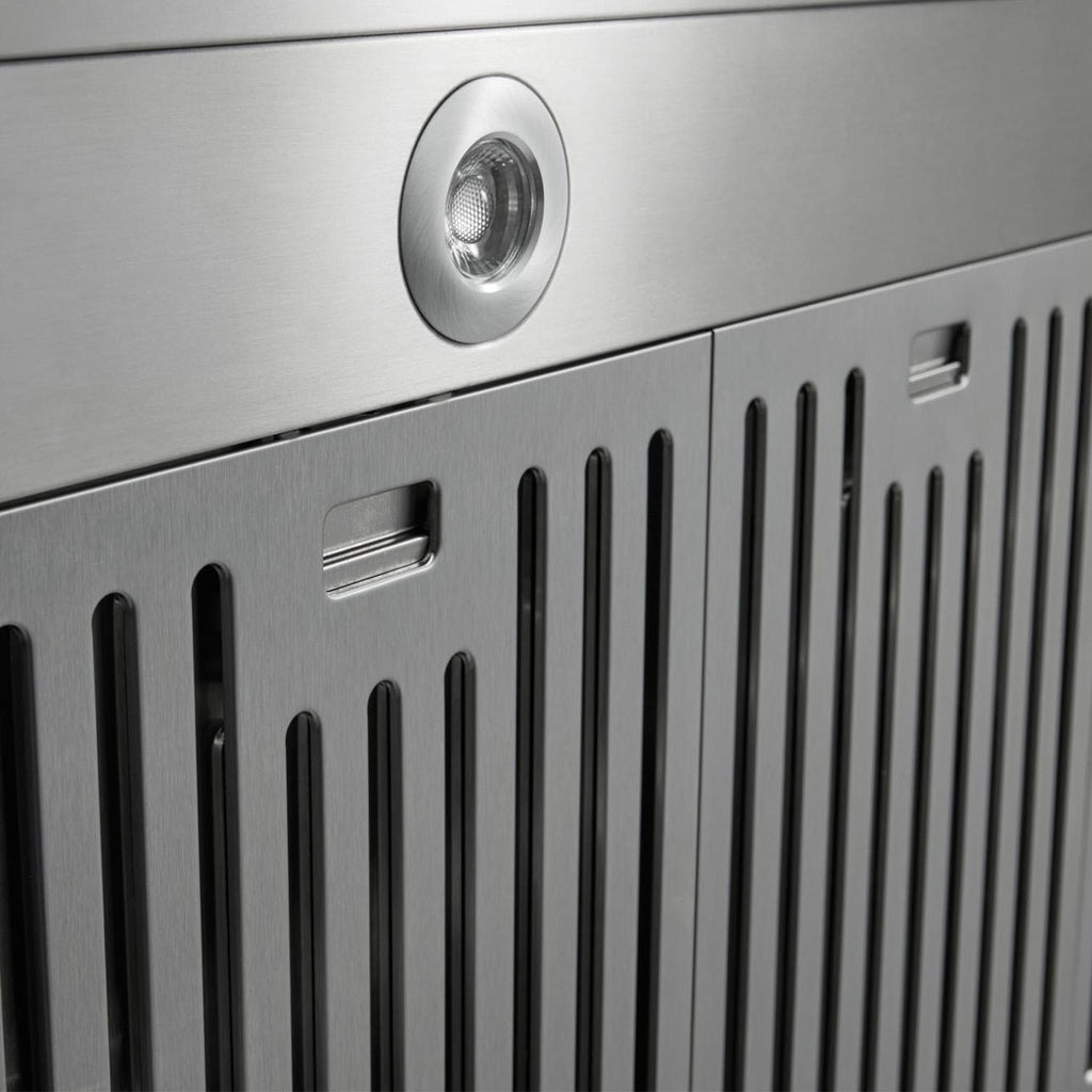 Large, commercial-style 430 grade stainless steel baffle filter maximizes air flow and grease filtering while the hood is in operation.